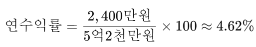 - 총 투자비용 = 5억 원 + 2천만 원 = 5억 2천만 원